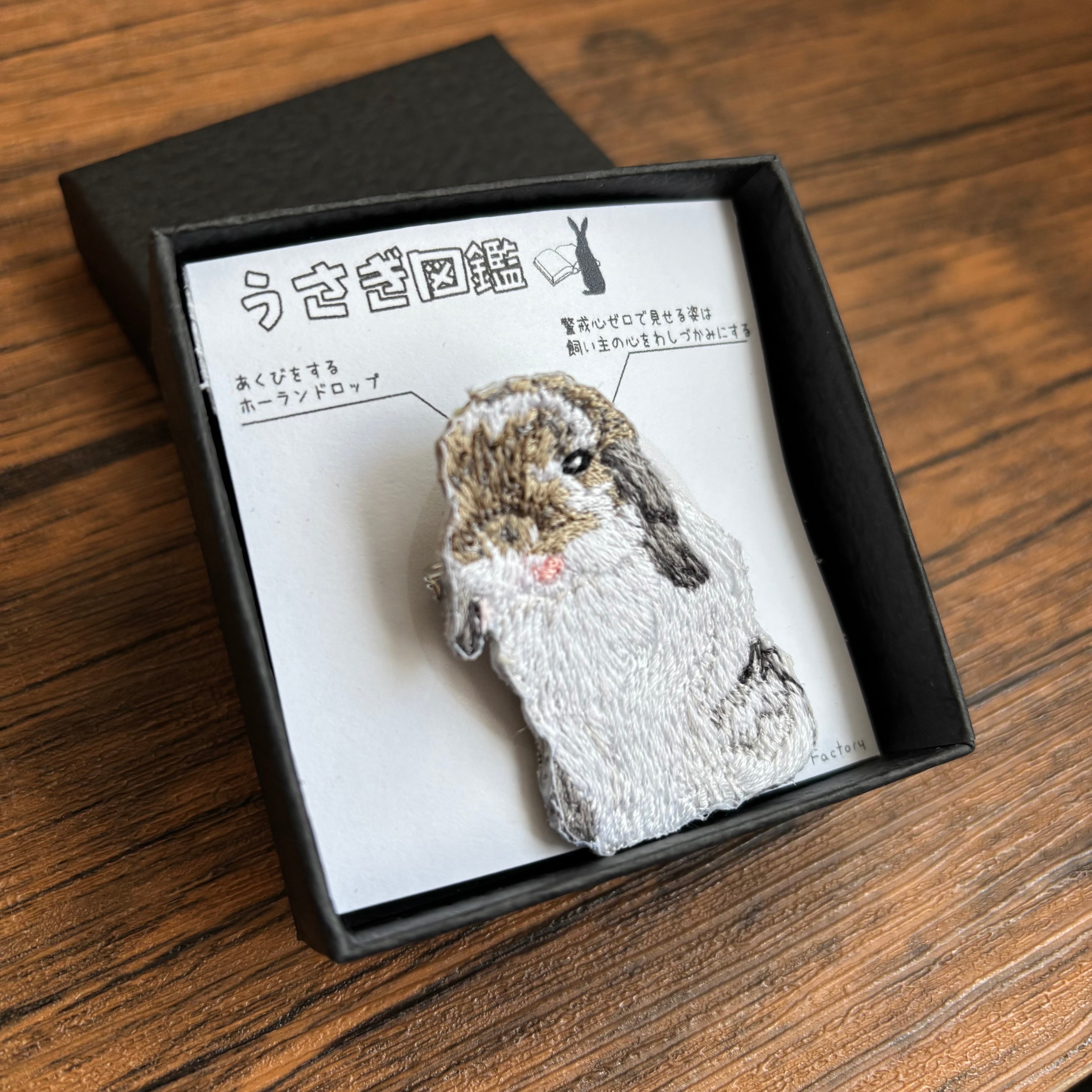 そんな可愛いうさぎの、色々な表情やしぐさなどを、刺繍ブローチにして、図鑑シリーズとして作品にすることにしました。