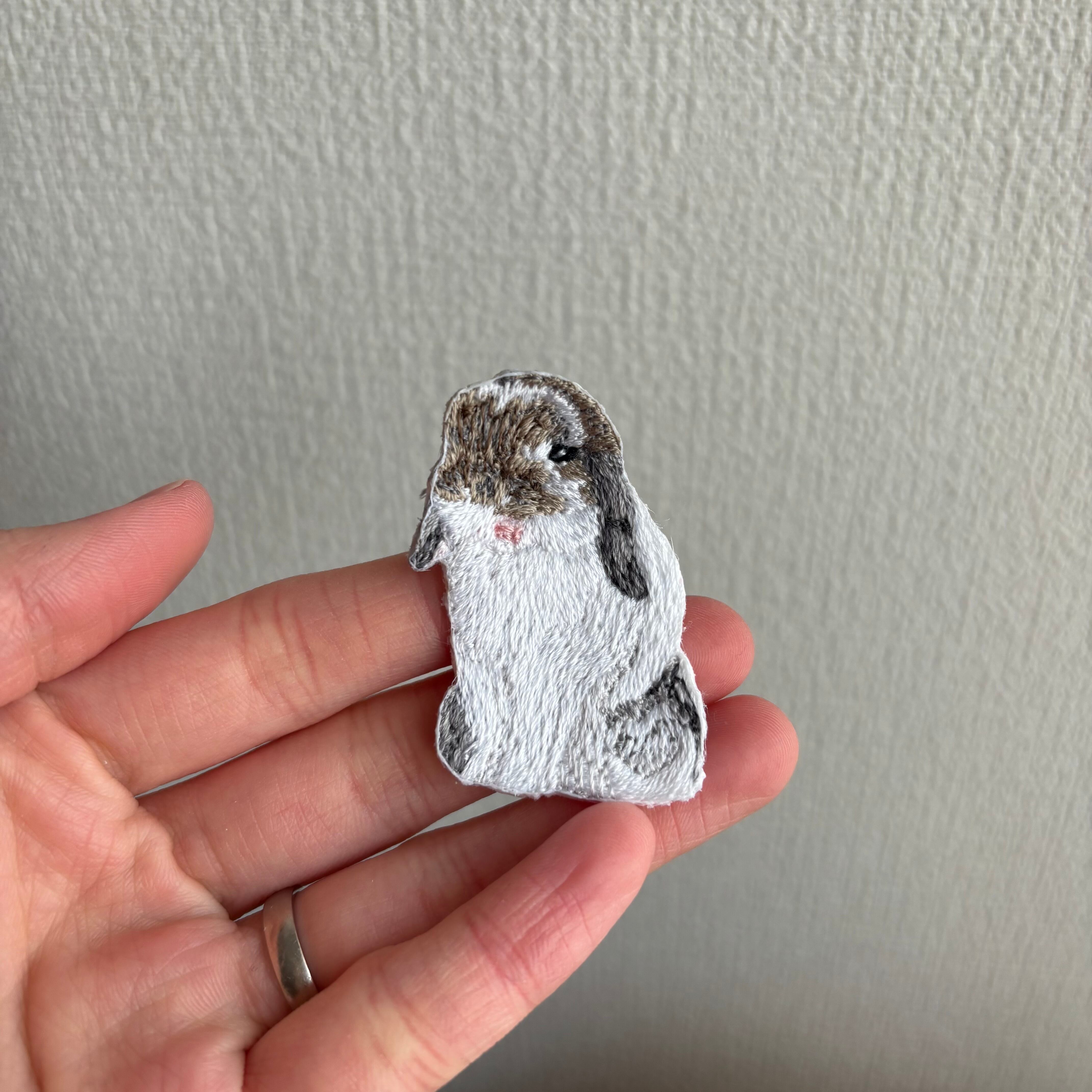 『うさぎ図鑑』あくびするロップさん/刺繍ブローチ