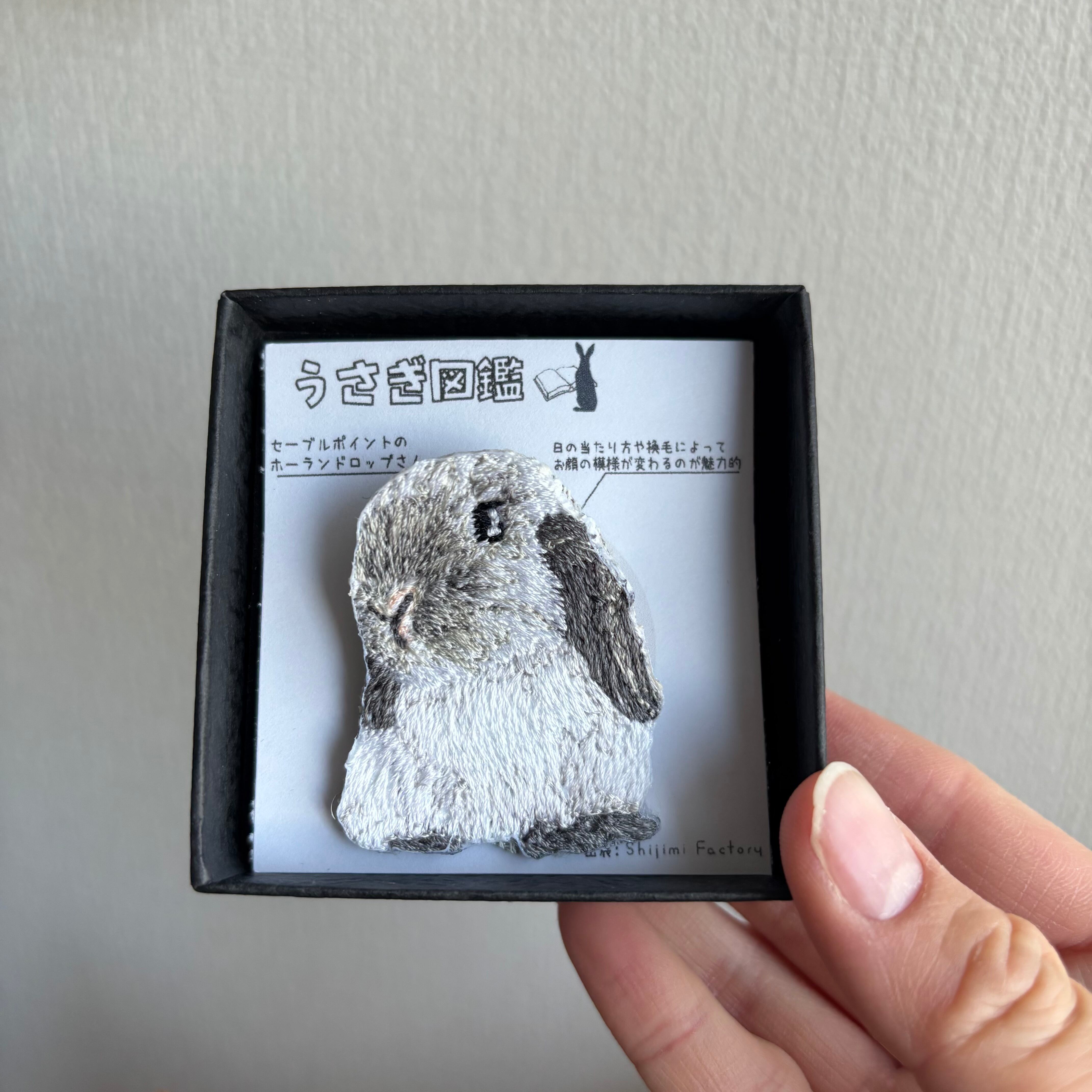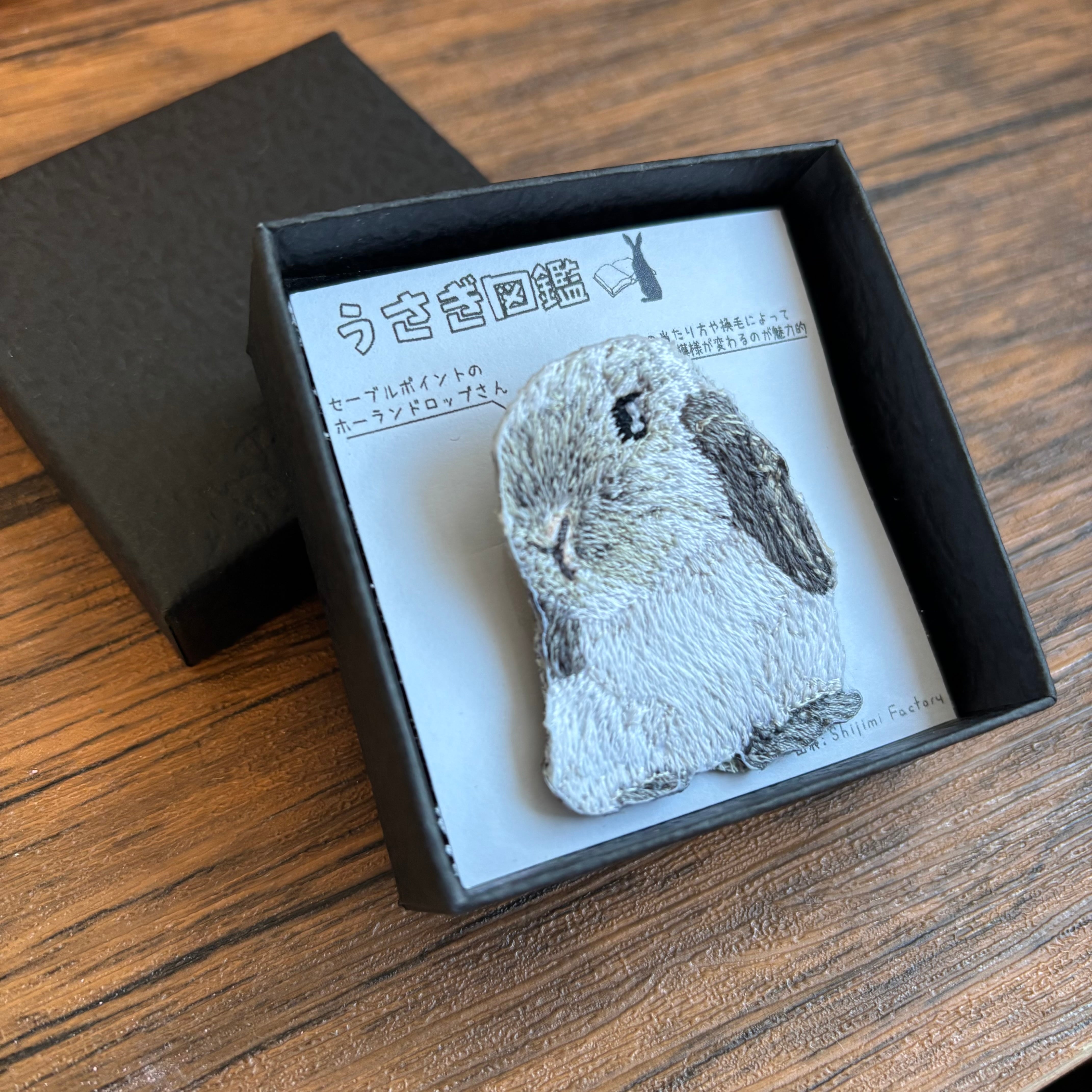 『うさぎ図鑑』セーブルロップさん/刺繍ブローチ