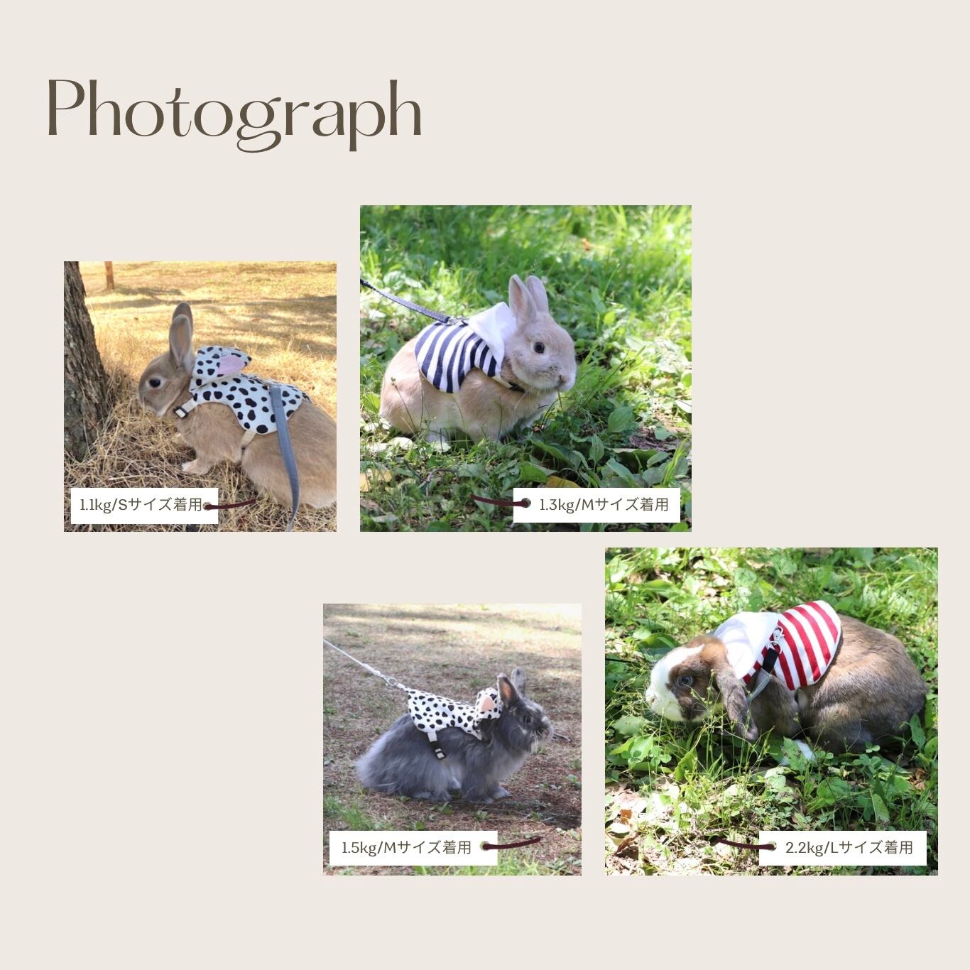 ・脱げてしまうリスクもございますので、おさんぽ中はうさぎさんから目を離さないようにお願い致します。? おさんぽ中に発生したトラブルにつきましては、責任を負いかねますので、ご了承ください。?・着用する際は、指がギリギリ1本入る隙間分、余裕を持って着用してあげてください。