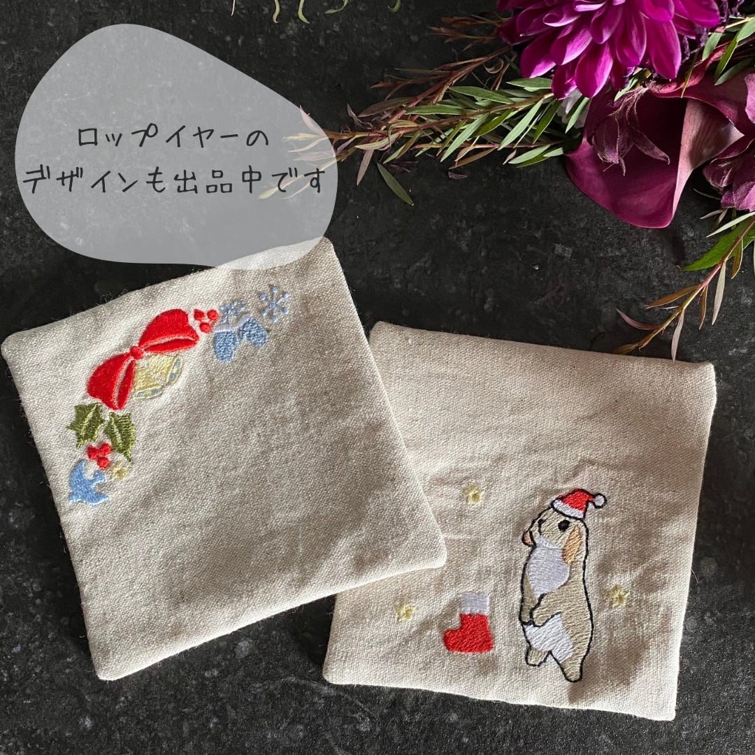 【クリスマス】ハーフリネン生地の刺繍コースター たち耳 2枚セット