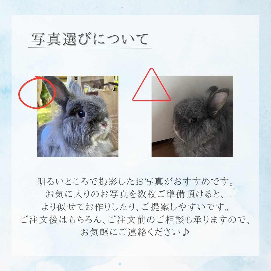 ・作品の事例として、InstagramやX、ホームページにうさぎさんのお写真や刺繍作品を掲載させていただくことがございます。